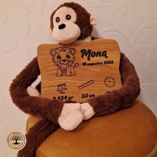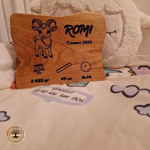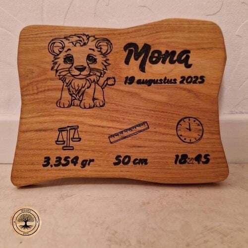Geboorteplankje voor een baby met uur,datum, gewicht en grootte in gegraveerd.